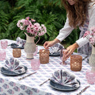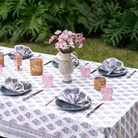 This Sagar Blue & Magenta Tablecloth is inspired by the beautiful architecture and culture of Central India. The perfect balance of classic blue and vibrant magenta bring a touch of luxury to any interior. The unique pattern is popular among home decor enthusiasts and is sure to make a beautiful addition to any dining space.