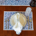Scalloped Knot Light Blue Embroidered Linen Napkin | Set of 4