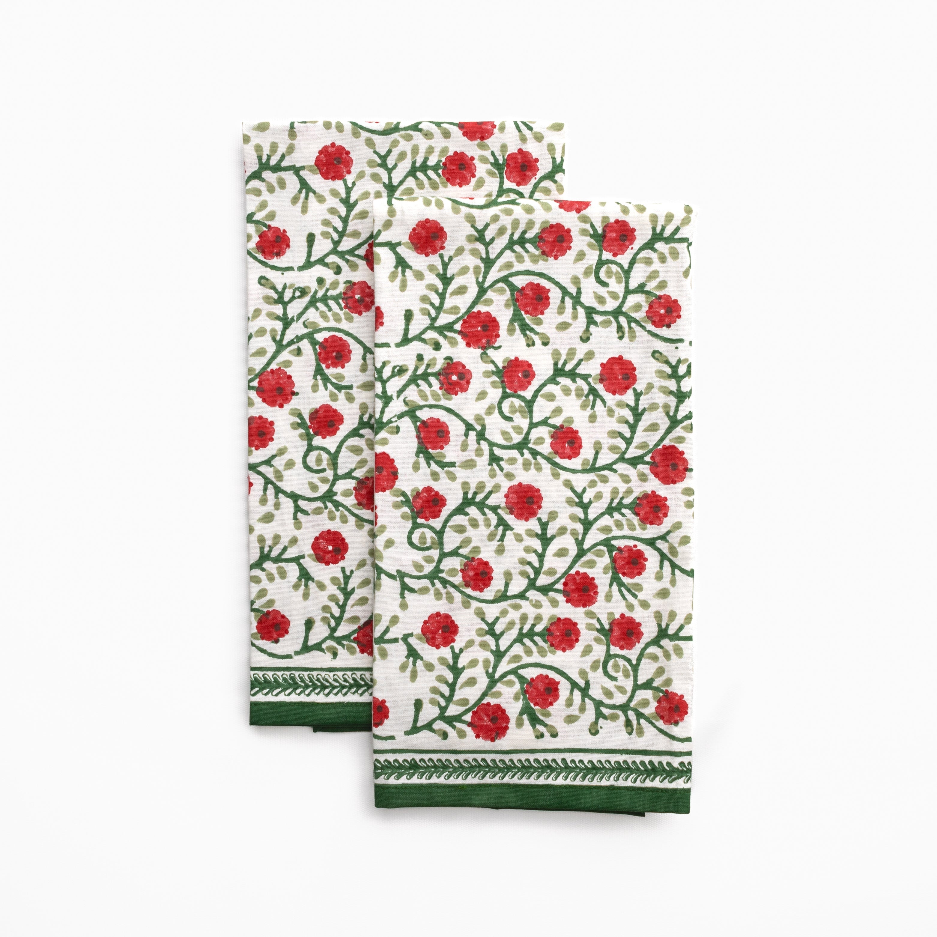 Add a seasonal accent to your kitchen with the Stephanie Red & Green Tea Towels. Hand block printed with cheerful red florals and fresh green foliage, they bring timeless holiday charm to everyday tasks. Use them to dry dishes, line a bread basket, or drape over the oven handle for an instant festive touch — a simple way to make even the smallest moments feel merry and bright.