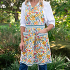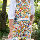 Add a pop of floral beauty to your kitchen with the Teal Garden Apron. This hand block printed apron showcases a cheerful array of garden blooms in vivid shades of teal, yellow, and pink. The apron’s adjustable strap and handy front pockets offer both comfort and functionality, perfect for keeping your cooking essentials within reach. Crafted from 100% cotton, this apron brings both style and durability to your daily kitchen routine.