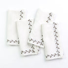 Twig & Bud Brown Embroidered Linen Napkin | Set of 4