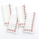 Introduce elegance to your table setting with our Twig & Bud Coral Embroidered Linen Napkin Set. Made from high-quality white linen, each napkin is exquisitely embroidered with a delicate coral twig & bud border. Add a touch of sophistication to any meal with this beautiful set of 4 napkins.