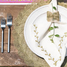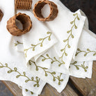 Twig & Bud Moss Embroidered Linen Napkin | Set of 4