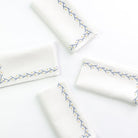 Expertly crafted from high-quality white linen, this set of 4 navy and yellow embroidered napkins add a touch of sophisticated elegance to any dining occasion. The delicate twig & dot pattern adds a subtle pop of color, making these napkins a stylish and practical addition to your table setting.