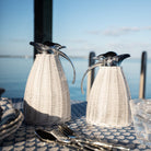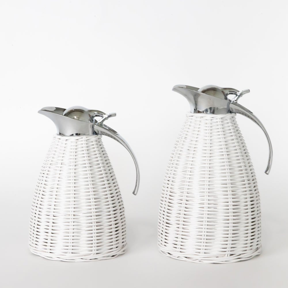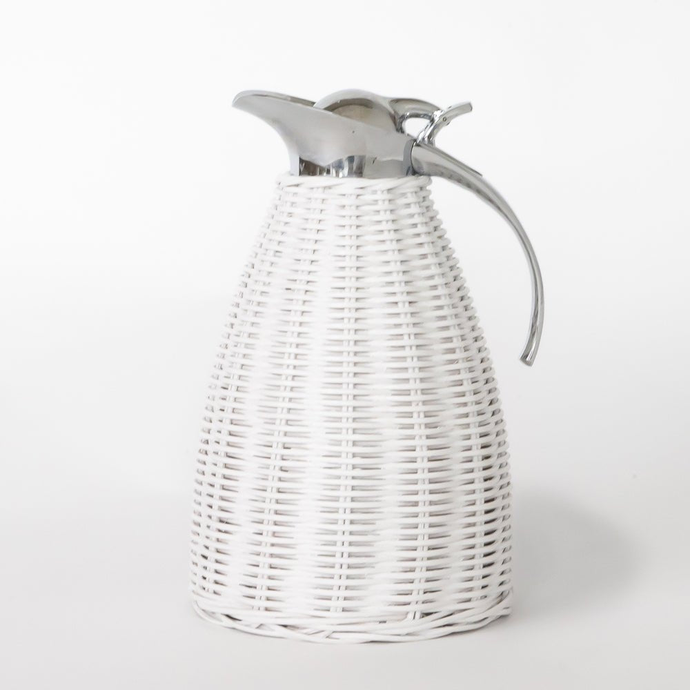 Elevate your home's charm with our White Wicker Thermos. Skillfully handwoven with high quality wicker, this piece exudes a timeless and relaxed style while still maintaining an air of sophistication. Ideal for use on tabletops or bedside tables, this versatile serving pitcher adds a touch of elegance to any living space.